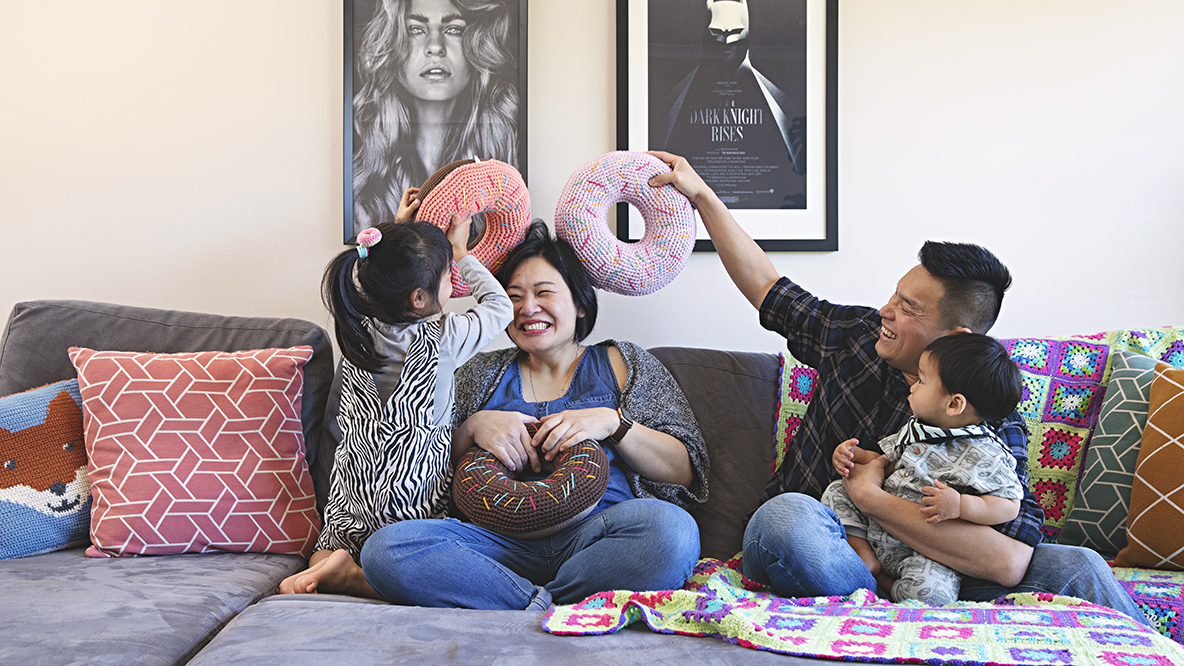 Right now, crocheter Paula Risanto is feeling a bit envious of her one-year-old son, Ren. He gets to wake up in what was - until recently - Paula's dedicated craft room, complete with wall of yarn, neatly filed craft books and accessories, and a heap of super-bright half-done crochet projects. "I'm kind of jealous, actually, because I want to wake up with a wall of yarns!"